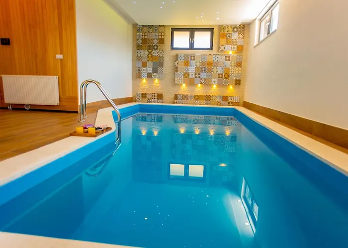 Zu den Verpflegungsmöglichkeiten zählt man eine Essecke, ausgestattet mit einer Minibar. Zur Selbstverpflegung stehen auch ein Wasserkocher, ein Kühlschrank und Küchenutensilien zur Verfügung. Gerichte der amerikanischen Küche werden im Restaurant Zuti Kutak serviert, das etwa 13 Gehminuten von hier entfernt liegt. Der Busbahnhof Ilidza liegt nur 700 Meter zu Fuß von hier entfern und bietet Transportmöglichkeiten in der Nähe. Die Villa bietet auch einen privaten Swimmingpool mit einer Sauna. Gäste können sich in einem Jacuzzi, einer Sauna und einem Hallenbad verwöhnen lassen.